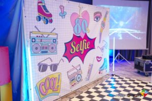 - מתחם צילום ותפאורה – עמדת צילומים מצחיקה עם רקעים ואביזרים